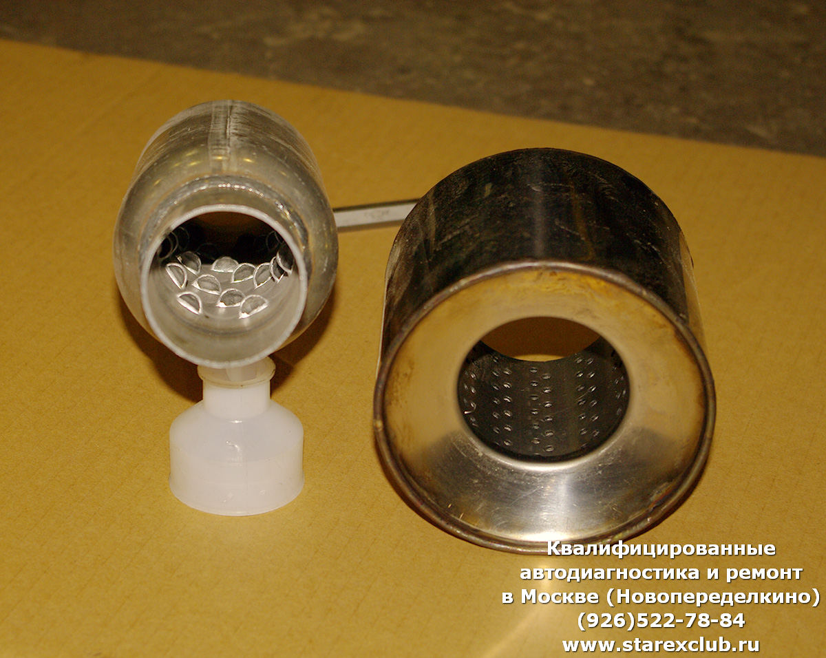 Разумеется, не забыли про устранение первопричины приведшей к таким последствиям на Ниссан Икс-Трейл (Nissan X-TRAIL) - удаление катализатора. Т.к. изначально родной катализатор был удалён неправильно (просто выбили всё его содержимое и вварили после него нечто непонятное по смыслу и пустое (в буквальном смысле слова) по содержанию, был подобран специальный комплект для установки вместо катализатора. Для данной машины он представлял собой 2 детали представленные на фотографиях.